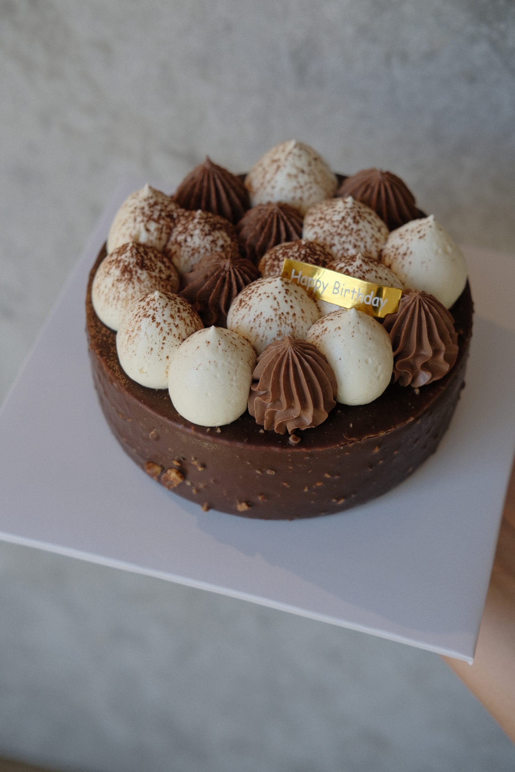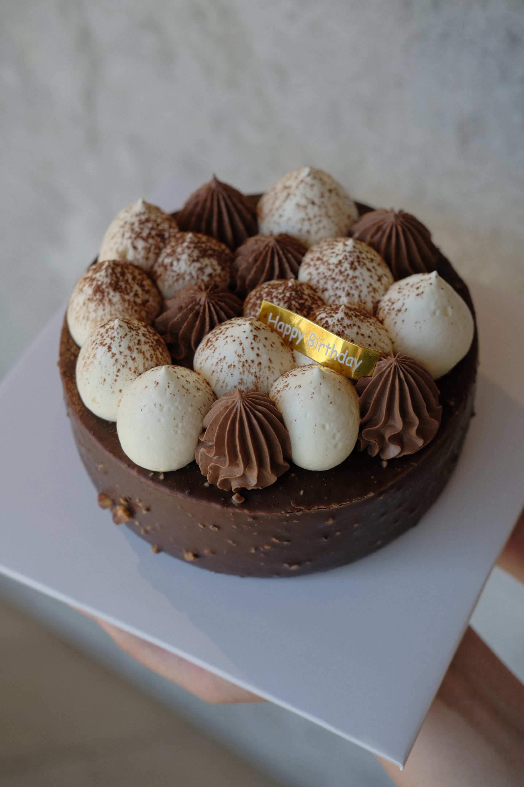 Enjoy Atelier Shu’s signature tiramisu in a brand new 6-inch size. Perfect for sharing with family and friends in any season. Features our house-made ladyfinger sponge soaked in coffee liqueur, layered with silky mascarpone cream, and finished with Belgian dark chocolate coated in hazelnut for an irresistible crunchy texture.